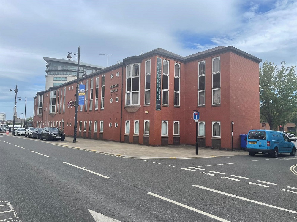 “Bridge House is a prominent office building located in the heart of the Sunderland city centre and overlooks the Wearmouth Bridge being the main road bridge crossing the River Wear. The office suites to let within this ideally located business centre each have their own dedicated entrance, independent kitchen facilities, toilets and ample free car parking on site and as such would suit a range of uses including studios, storage units or training venues.”
