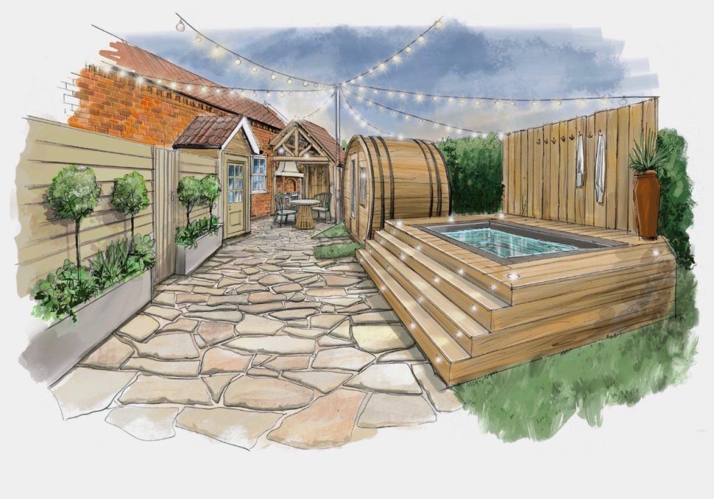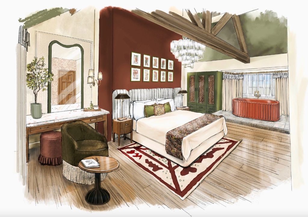 The cottage will also have a private courtyard with an outdoor sauna, hot tub, barbeque and fire pits.