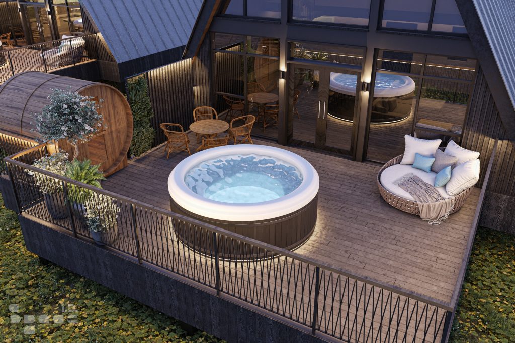 And guests checking into the lodges will also have access to a luxury decked area outdoors, featuring a private hot tub and sauna.