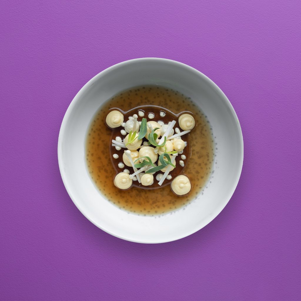 · Mad Hatters Tea Party – Alice in Wonderland – Summer Truffle & Mushroom Consommé, Comte Royale, Brioche