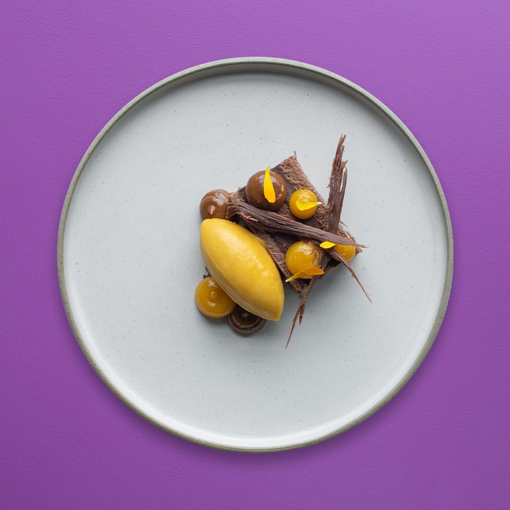 · Bruce Bogtrotter’s Chocolate Cake – Matilda – 54% Chocolate Cremeux, Miso Caramel, Mango & Passion Fruit
