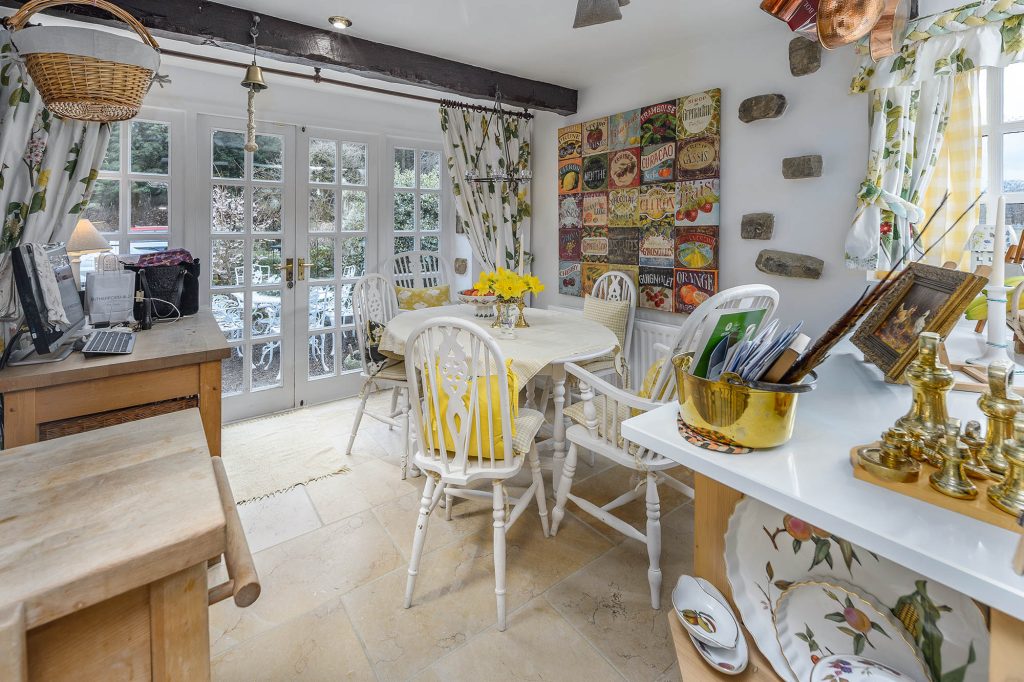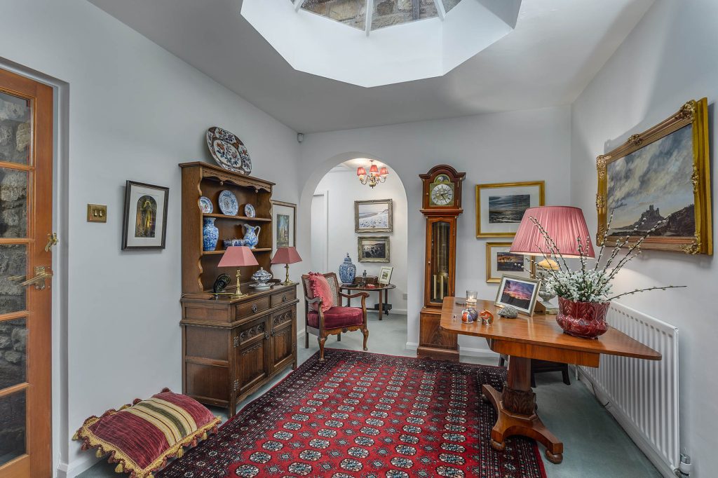 This lovely family home has a welcoming internal hallway with exposed stone walls leading to a reception hall with a lantern roof light window, doors lead to a study and a separate office. Double doors open on to a comfortable sitting room with a feature stone inglenook fireplace with exposed beams housing a gas log fire with canopy chimney and stone hearth. There is a separate dining room with exposed beams and a door to a garden room. A laundry room with storage leads to the kitchen/breakfast room which has a rural cottage feel, bespoke Oak units at base and wall levels, Quartz work tops with an inset Butler sink. Electric range with hob, griddle and hot plate, treble oven and a plate warming tray. Exposed beams, a Jerusalem limestone floor, double doors to the front garden and inset spotlights complete the furnishings. There is a double bedroom and a shower room with a Victorian style suite on the ground floor.