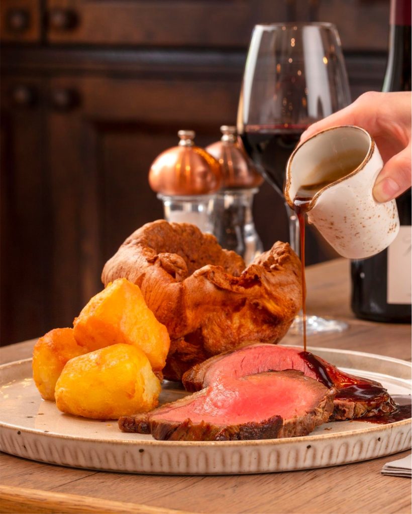 The Blackbird in Ponteland is popular with Darras Hall residents and has a fantastic Sunday lunch just outside of Newcastle. With old stone walls and large fires, this is the ideal place for a quick drive from the city centre. Their roasts come with all the trimmings including pigs in blankets year-round, and they offer a trio of meats for only £16.95.